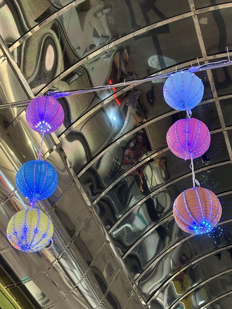冬期のオリオン通りのイルミネーションが様々な装飾と共に輝いています☆そして昭和ノスタルジックな「オリオン通り」のネオンサインを特に見て欲しいです♪天井があるので反射してキラキラしています♥ (訪問:2026/01/09)