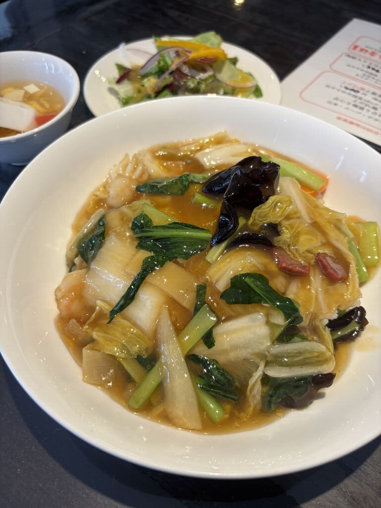 ランチ訪問。カフェみたいな中華料理屋さんですが味は本格的な中華です。海鮮入り五目あんかけご飯を注文。本日のお茶はホットとコールド選べます。この日はジャスミン茶、デザートはマンゴープリン。本格的なお茶がピッチャーで出てくるし、デザート美味しいしで大満足です。ここは1人でも入りやすいですよ。 (訪問:2025/07/18)