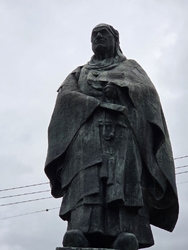 国道119号沿いにあり、近くの「神橋」を眺めるようにして建っている銅像です。観光客の中にこの像をスルーされる方を見かけましたが、“天海“は江戸時代に日光を再興した立役者ともいうべき僧侶であり、歴史への理解を深めるために、ぜひ立ち寄っていただきたいスポットです。像のわきに、わかりやすい説明板があります。 (訪問:2025/09/21)