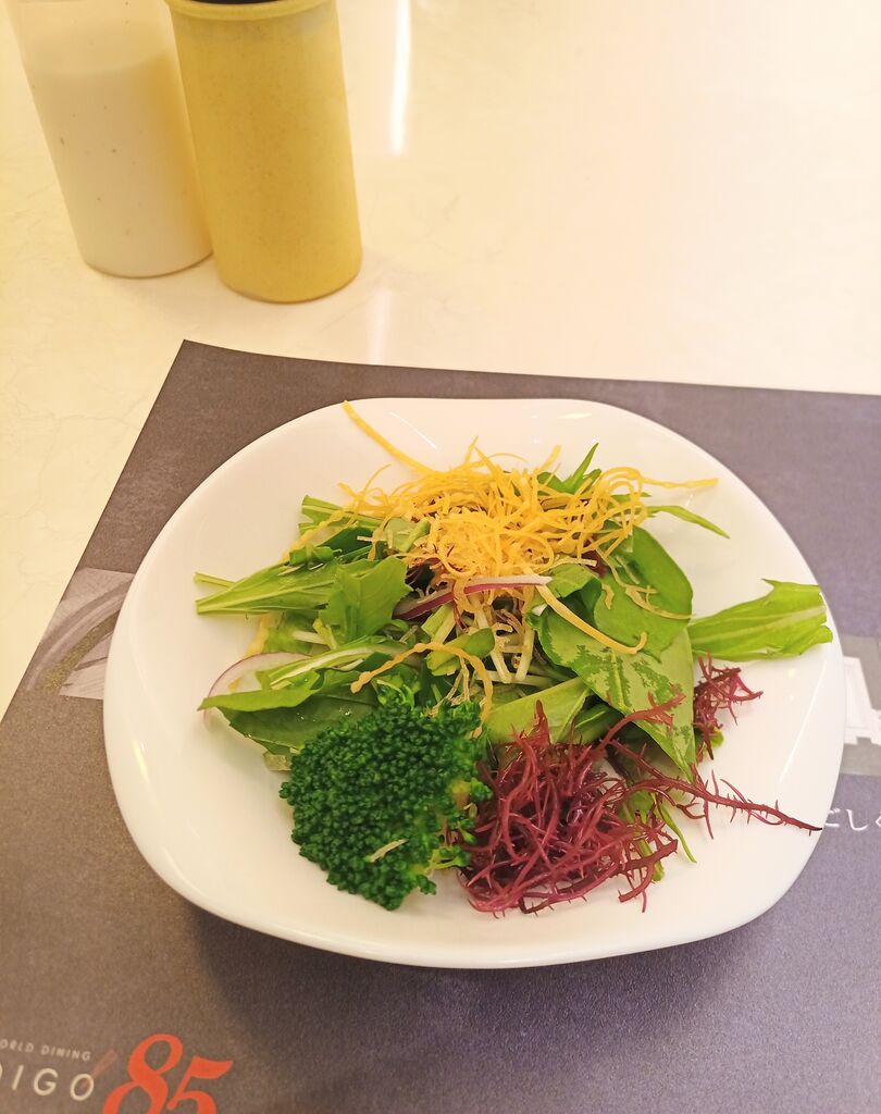 浮足立ち来店です。わくわくの初来店に、ドキドキしながら入店♡数日前に予め予約をしました。栃ナビポイントがあったので、折角だから行ってみたかった【INDIGO85】さんでランチしようと思い、ひとりのんびり楽しみました。メンバーさん推しのハンバーグに決定!‼『きのこおろしハンバーグ・¥1,450』をオーダー。サラダは2種類のドレッシングを提供してくれたり、ドリンクは種類豊富な中から選ばせてくれたり嬉しい限り。ハンバーグはおろしポン酢でさっぱりいただきました。げんこつ大のハンバーグは、ジューシー。きのこもたっぷり乗ってやって来ました。絶対また行きたい^_^美味しくて充足感でいっぱい。¥1,000引きは涙がちょちょ切れる程嬉しい。ありがとう御座いました。 (訪問:2025/12/30)