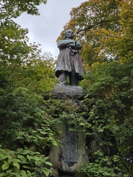 神橋の近くにひっそりと、一見すると見過ごしてしまうような木々の中に目立つこと無く建っている板垣退助の銅像です。彼が、戊辰戦争の時に、新政府軍の将として、日光の社寺を兵火から、守った功績を今に伝えております。 (訪問:2025/10/19)