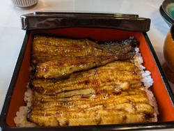 うな重税込み3240円をテイクアウトいたしました。今まで、スーパーや外食チェーン店の鰻しか食べたことなかった私。鰻なんてどこで食べても同じ、と思っていたのですが、一口目から、別世界が待っていました。身にしても、皮にしても、ちょい焦げ部分が素晴らしく香ばしい。食感も、身はかりっと、皮はぱりっと。ちょっとの違いですが、それがまじ旨いです。焦げ無し部分のふっくらした身も、柔らかな皮も激旨。一匹の鰻が、お料理次第で何種類もの味と食感を堪能できる蒲焼になるんですね。今まで食べていた鰻は、どこを食べても蒲焼のたれの味しかしなかったのに・・・。誕生日を迎える娘からのリクエストの鰻でしたが、このお店選んで良かったです。うちの超我儘娘も、ずっと「旨いね。これ、おいしいね。」の繰り返しでした。今日のうな重のおかげで、これからまた気温40度になっても何とか頑張れそうです。 (訪問:2022/07/24)