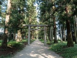 仁徳天皇の頃の建立と伝えられる那須神社。弓矢の名人「那須与一」の太刀も奉納されており、毎年9月敬老の日には例大祭が行われ、流鏑馬・獅子舞が催されます。また、参道には桜の大樹があり見事です。国重要文化財指定、おくのほそ道風景地名勝指定。