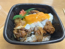 職場のすぐ近くにあるこちらを定期的に利用します。日曜日のお昼にネットオーダーにて注文。ネットオーダー限定クーポン使用で、温玉付き焼鳥つくね重にしました。甘辛いタレが絡んだ鶏もも肉とふっくらつくね。温玉が絡んでもう絶品♪最高の組み合わせですね〜。ねぎと紅生姜と七味もいい仕事してくれてます。終わらないうちに、また再度食べたいと思います‼︎ (訪問:2025/10/12)