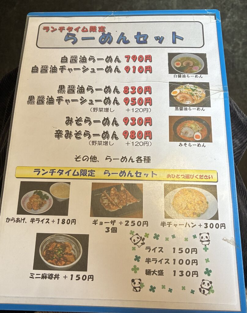 お昼の時間に伺いました。人気店なようで、平日でも混み混みでしたが運良くすぐに座る事が出来ました。色んなメニューがありましたが、一番王道っぽい「白醤油ラーメン」を頂きました。サッパリ系で、飽きないお味です。チャーシューマシマシにしたので、開幕・中盤・シメの3回に渡り柔らかな美味しいチャーシューを食べられて最高です!麺は「平打ち麺」で食べ易くって美味しいです。量も多めで、お腹いっぱいになれました。寒い日に食べるラーメンは最強ですね!!!!美味しかったです、また行こうと思います! (訪問:2025/11/21)