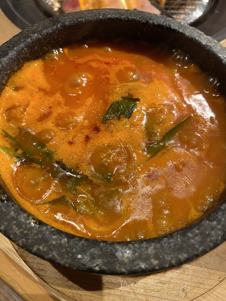帰省していた息子と2人でランチ訪問しました。選べるランチではなく普通のランチに変わって1485円に値段は少し上がっていましたが、選べるランチには付かなかった選べるドリンクが付きました。お肉、サラダ、冷奴、スープ、石焼辛いクッパ、選べるドリンク(アイスコーヒー)、選べるスイーツ(杏仁豆腐)更にさくら市のさくらpassでお肉一皿サービスして貰いました。柔らかでジューシーなお肉、程よい辛さのクッパは極旨。以前伺った時より色々なメニューが増えていました。リーズナブルで気軽に美味しく頂けるのでお勧めです。(下のお肉はさくらpassで頂いたお肉です。) (訪問:2026/03/16)