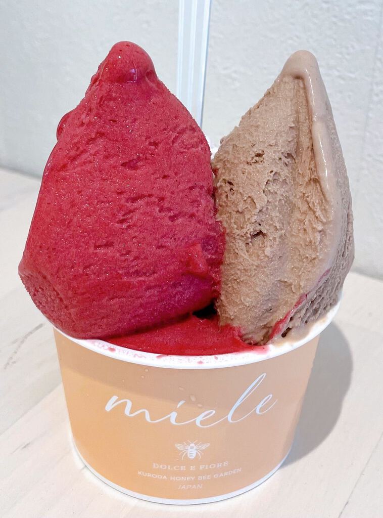 黒田養蜂園のショップで蜂蜜を購入後、こちらでジェラートをいただきました。選んだのは、オーガニックショコラとカシス+ワンスプーンはブルーベリークリームチーズ。この日は暑かったので、別棟の涼しいイートインスペースでゆっくり味わうことができました♪ (訪問:2025/08/09)