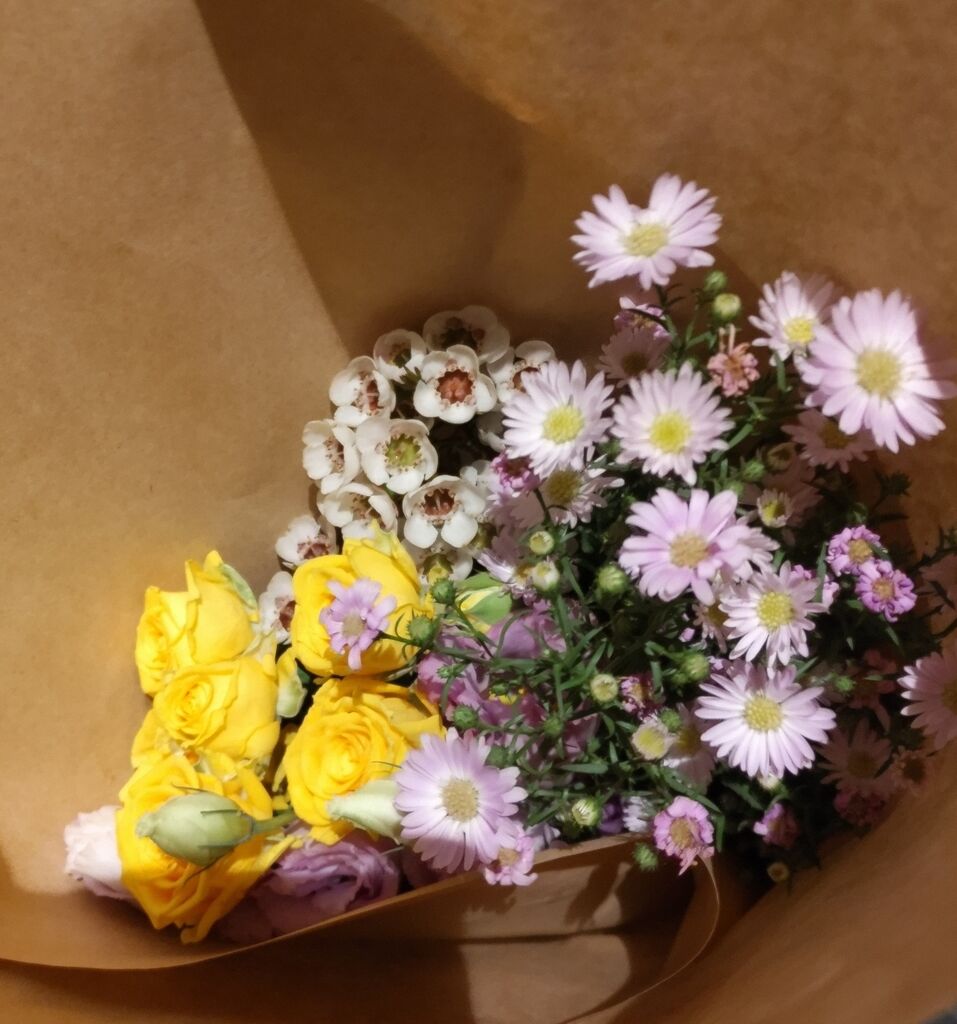 来客の予定があるため自宅に花を生けようと思い買いに行きました。お店に並べる前の段ボールに入った状態の花を選ばせてくれました。アルストロメリアやバラ、スプレーバラ、ユーカリ、スプレー菊など6種類購入しました。自分でイメージしていた淡いオレンジとグリーンでまとめられました。段ボール箱から出したばかりなのでしっかり水切りをするようにアドバイスしてくれました。玄関が華やかになって良かったです。 (訪問:2023/08/18)