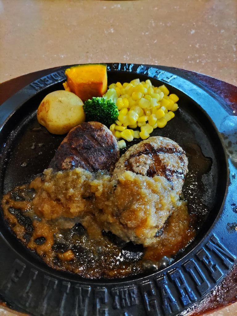 テレビ番組で栃木のローカルチェーン店「フライングガーデン」をやっていて皆さんが美味しそうに食べているのを見て【爆弾ハンバーグ】が食べたくなり旦那さんと行きました。ランチセットの和風ソースを選びスープを飲みながら待っていると「来ました〜爆弾ハンバーグ〜」200gでもボリュームあり、私は追いソースをお願いしてしっかり完食しました。他にも色々なソースがあったので次回は違う味にしようと思います。ごちそう様でした。(◍•ᴗ•◍) (訪問:2025/10/21)