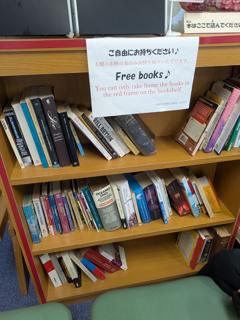 宇都宮の表参道スクエアにあります。国際交流・多文化共生を推進し、相互理解と友好親善に努め、宇都宮市の国際化と世界平和に貢献することを目的としています。ご自由にお持ちくださいと書かれた本棚がありました。 (訪問:2026/01/06)