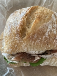 久しぶりに、パンを買いにオープンの時間を目指して行きました。店の前の駐車場はほぼいっぱいで、びっくり、カフェランチの人ですかね。スコーン、キッシュ、生ハムカマンベールのサンド、ミルクサンド、フルーツパンなどを買いました。シナモンロールは、昼頃焼き上がりなので、今回は諦めました。初めての、サンド見た通り、パンがサクッとして、美味しかった。 (訪問:2025/11/07)