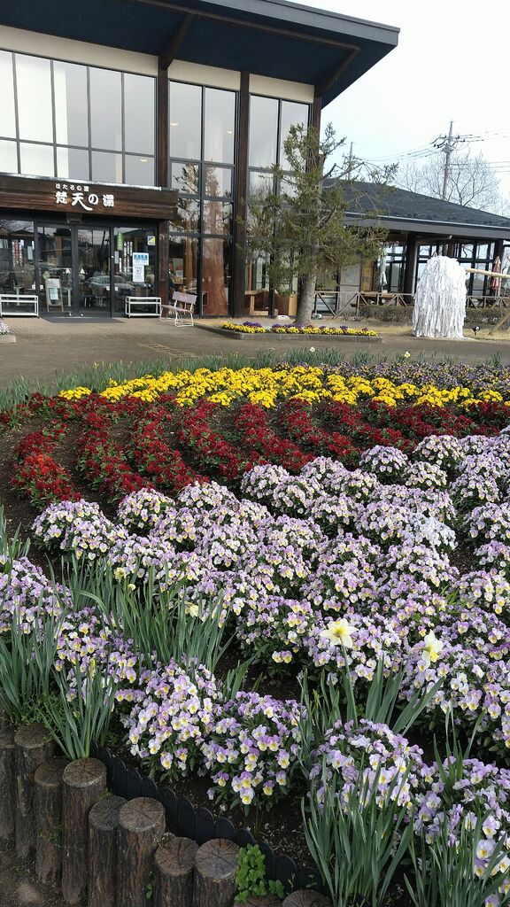 まっ.....まさか!‼梵天の湯さんで、こんなにもカラフルで綺麗に咲き誇る花が観られるなんて、うれしーい。丁度タイミングが良かったようで様々な花を愛でて私の目はハート♡に。その後の温泉利用は、感動冷めやらず心の充電100%での入浴でした。ついでに餃子も食べて、胃も充電100%。¥100の椎茸も購入出来て【100】という数字で心身共に満たされました。梵天の湯の私のルーティン。最初の気泡風呂から始まり水風呂での締め。全て調いました。何度でも利用したい日帰り温泉です。 (訪問:2026/03/29)
