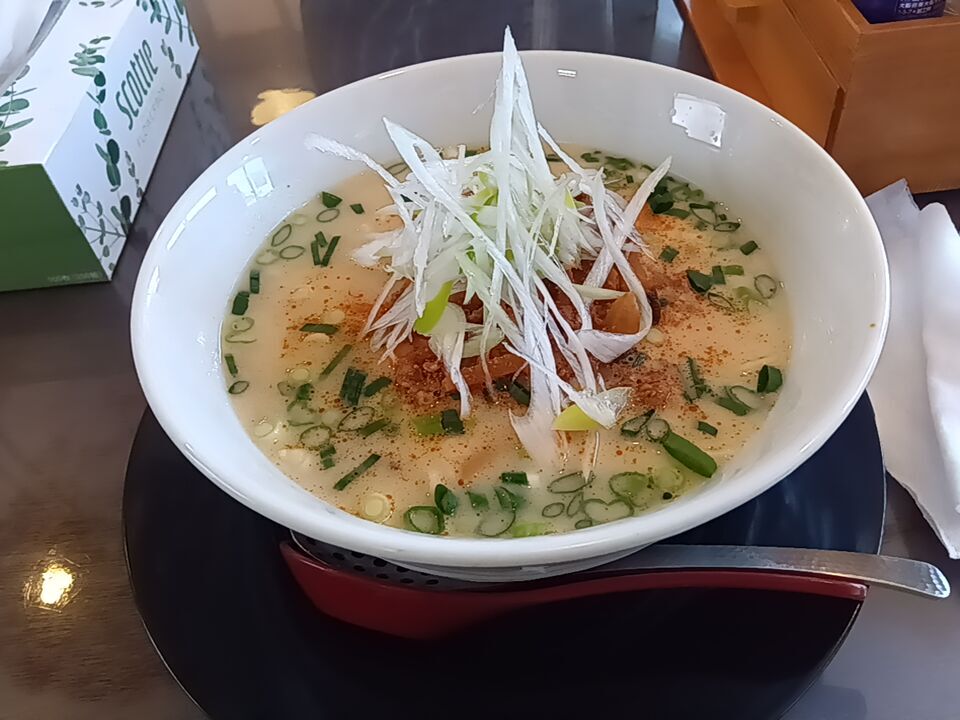 こってり系とあっさり系で迷いましたが、今回はこってり系の【鶏白湯ラーメン(しお)】と餃子を注文しました。白濁で濃厚なコクのあるスープに麺はよく絡む細麺です。とろけるやわらかな食感のチャーシューもとても美味しかったです。サービスでウーロン茶ゼリーも頂き、最後はさっぱり。ごちそうさまでした。 (訪問:2023/07/20)