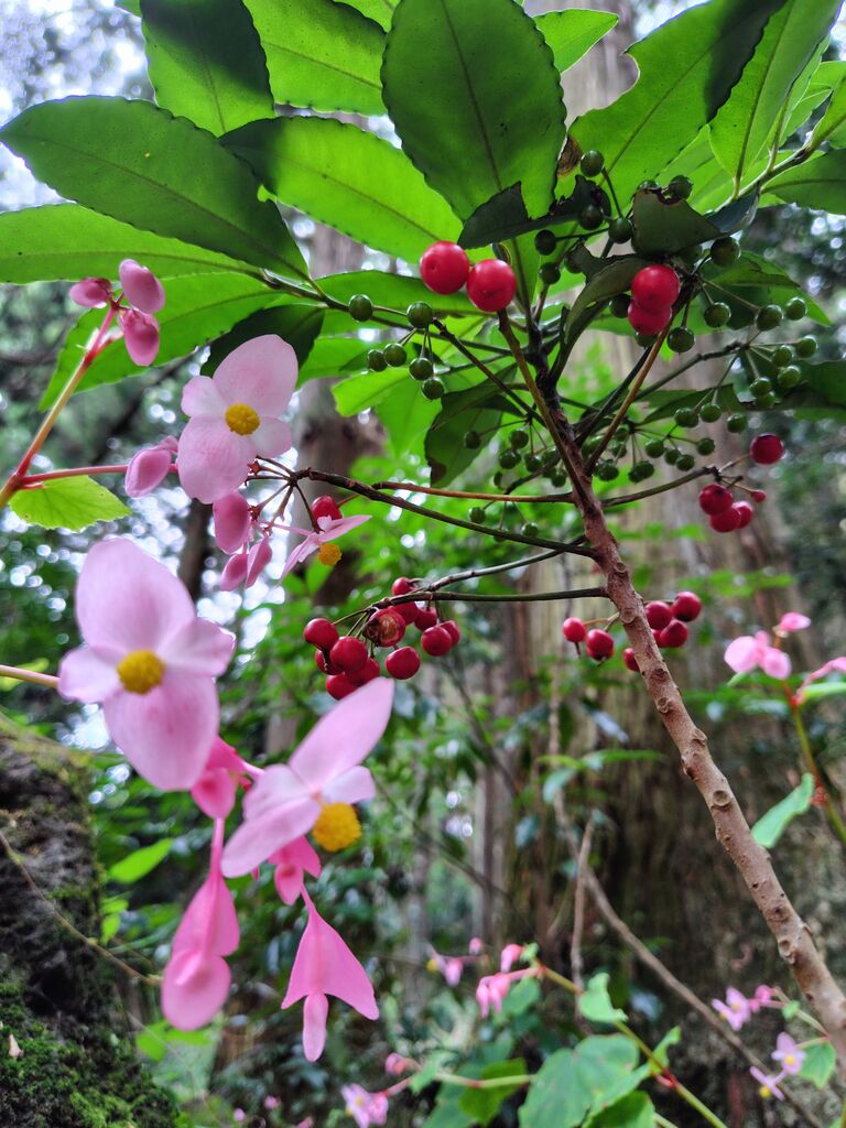 秋海棠(シュウカイドウ)を見に行ってきました。広範囲に群生して、一面 ピンク〜♪黄色いポンポンと、透き通るような淡いピンクがなんとも可愛らしく、心穏やかに散策できました。 (訪問:2025/09/23)