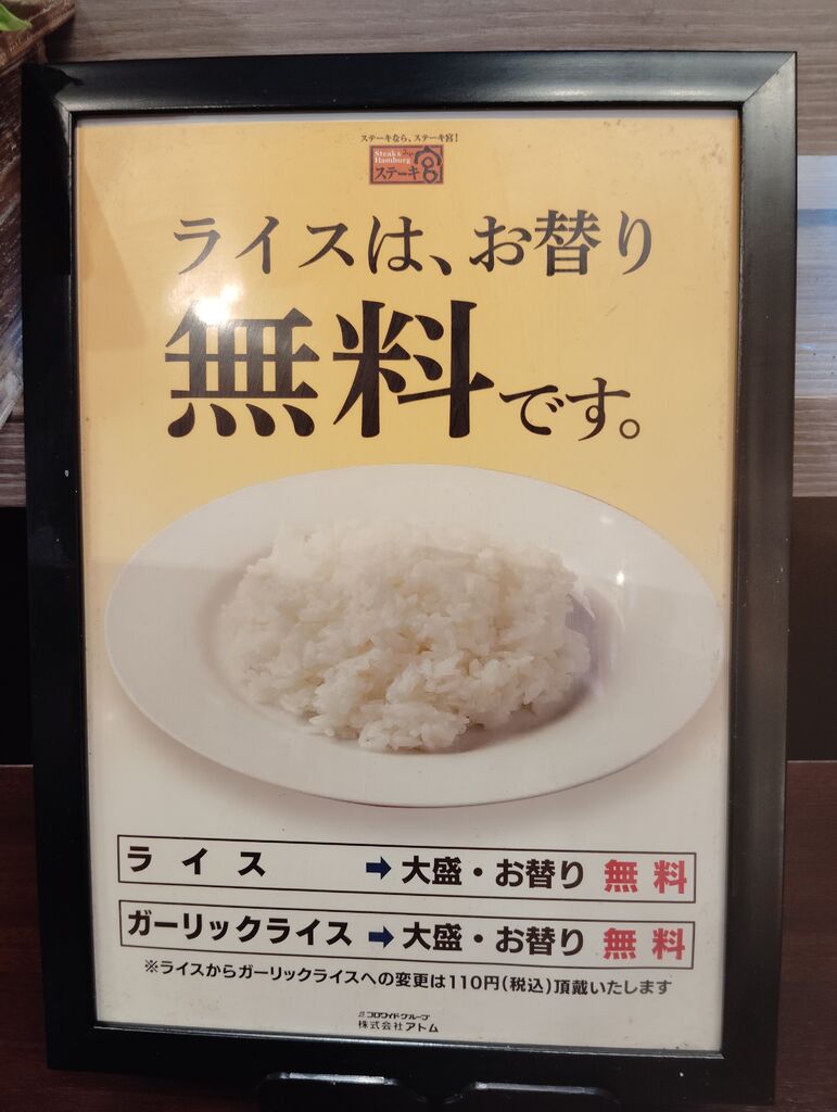 今日は、 佐野市 ステーキ宮 佐野店さんに、久しぶりに、来ました。ステーキ宮さんは、栃木県民なら、誰でも知っているお店ですね。今日は、ステーキ宮さんの企画、2025年歳末大感謝祭が、開催されています。あの美味しい、宮ハンバーグ 180グラムが、15%オフになる企画です。期間限定です。ステーキ宮さんのアプリの中にある、クーポンをお店のスタッフさんに見せます。そうすると、宮ハンバーグが、15%オフになります。なので、宮ハンバーグを注文しました。ランチなら、スープバーやライスバーがついています、スープバーも4種類あります。ソースも何種類から選べますが、もちろん、宮のタレに決まりです。宮のタレは、生たまねぎ、おろしにんにく、しょうゆ、酢のみだそうです。何日か、寝かせて作るそうです。体の良さそうですね。美味しいですね。お米が、高いのに、ライスが、何敗も食べられます。食欲のある方には、特におすすめですね。ごちそうでした。また来ます。 (訪問:2025/12/07)
