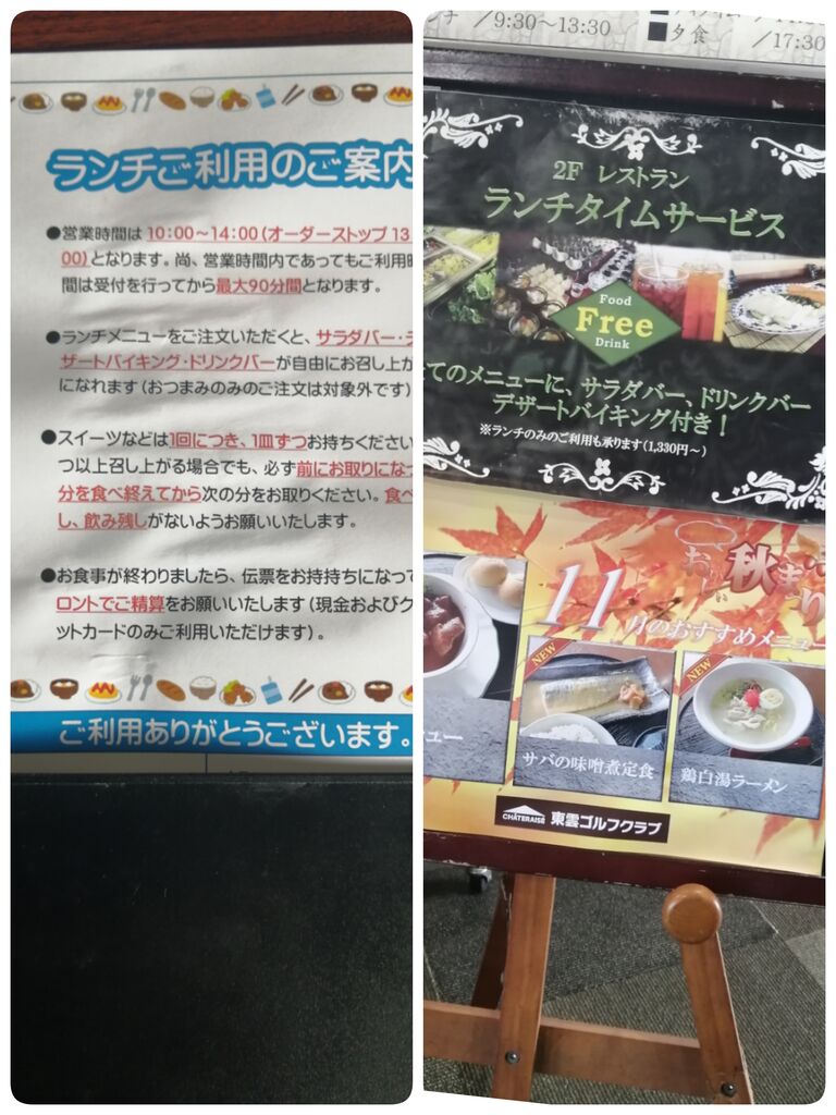 「ランチ食べに行こっ♪」…と、友人が予約をしてくれて連れてってくれました。プレーしないのにこちらでランチビュッフェができるなんて知りませんでした。フロントで受付をしたらレストランのある2階へ。コースを一望できる開放的な大きな窓。制限時間は90分です。メインメニューを選んだらドリンク、サラダ、漬物、デザート、アイスが食べ放題♪しかもデザートは[シャトレーゼ]さんの品!私は[しょうが焼き定食]友人は[黒毛和牛のハンバーグ定食]をお願いしました。メイン料理が来る前にドリンクとサラダを盛ってスタンバイ«٩(*´ ꒳ `*)۶»ワクワク…ほどなくしてメイン料理登場。柔らかな分厚い豚肉…美味しいです。シャトレーゼのスィーツビュッフェはいろいろな種類のケーキ、シュークリーム、プリン、コーヒーゼリー等、どれを食べても美味しくて全制覇しました。紅葉した木々を眺めながら美味しい料理にたくさんのスィーツ…サイコーすぎる♪お腹いっぱいになりました。しかも友人がごちそうしてくれました。ありがとー♪ごちそうさまでした•ᴗ•ꕤ* (訪問:2025/11/11)