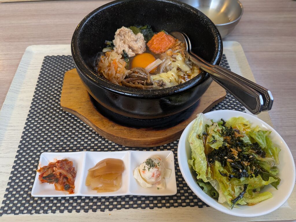 石焼ビビンバのランチ。甘めの味付けで好みでした。机に味変用にいろいろ調味料が置いてあるのも良かったです。スープもビビンバに合うような味付けになっていてとてもおいしかったです。追加で頼んだ杏仁豆腐もとろっとしてて好きでした。 (訪問:2026/03/14)