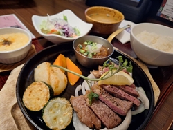 ランチは「茶屋草木万里野大田原店」さんで頂きました⸜(*ˊᗜˋ*)⸝私も母も初めて立ち寄らせて頂きました!広々とした駐車場が完備されていて、私たちが帰る頃には車でいっぱい埋まっていて人気さが伺えました。半個室のような席が他者の目を気にせず落ち着けて座れるので居心地良いです。店内は明るさが丁度よく、穏やかでモダンな雰囲気かな。スタッフさん皆様ご丁寧にご親切にご対応下さいました。いろいろご配慮下さり本当にありがとうございます。注文はテーブルに備え付けのタブレット端末から行うシステム。私は「お肉のランチ(普通盛り)」と「ランチドリンク(アイスチョコチーノ)」と、母とシェアして頂く用にデザートに「グラスパフェ」と「ベリーベリーパフェ」をオーダーさせて頂きました(*^^*)「お肉のランチ」ジュージューとお肉が焼ける良い音と香りが漂ってきて、たまりません。油っぽ過ぎず淡白過ぎない調度良いお肉。柔らかくて美味しい♡ソースとの相性抜群です。また、小鉢等もどれも気に入るくらい良かったです。「アイスチョコチーノ」オシャレなドリンク。クリームの滑らかさが加わってマイルドな苦味に。母が特に気に入ったようでグイッと飲んでいました!「グラスパフェ」&「ベリーベリーパフェ」どちらも小さ過ぎず大き過ぎず、食べやすいサイズ感。めっちゃ可愛い。グラスパフェはバニラアイスやブラウニーの濃厚な味わいが美味しくて、ベリーベリーパフェはベリーの甘酸っぱさがスッキリした風味で。どちらもとても美味しかったです(*´﹃`*)神社散策でちょっぴり疲れた体を癒して頂きました!ご馳走様でした。ありがとうございました☆ (訪問:2024/10/31)