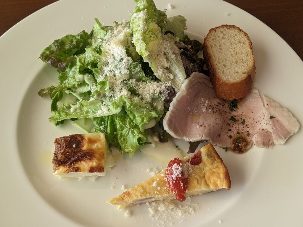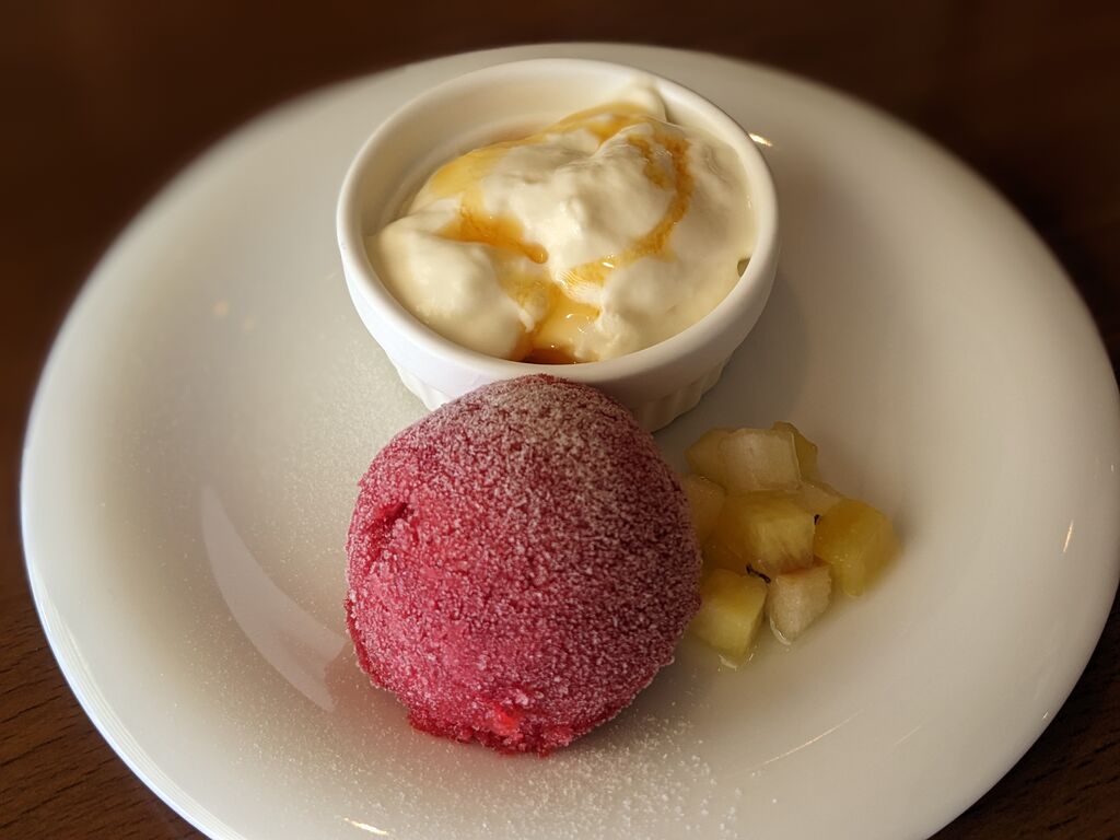 前菜の盛り合わせが付くBセットのランチをお願いしました。サラダ&前菜の盛り合わせは、ワンプレートに多種盛りの美味しいお料理が綺麗に盛り付けられていて、これだけで幸せな気持ちになります。パスタは3種類から選べ、自家製ソーセージのトマトソーススパゲティにしました。トマトソースが濃厚で好きです。選べるドリンクは桃のアイスティーにし、本日のドルチェはストロベリーのソルベとティラミスでした。どれも美味しく、おすすめのお店です! (訪問:2025/10/18)