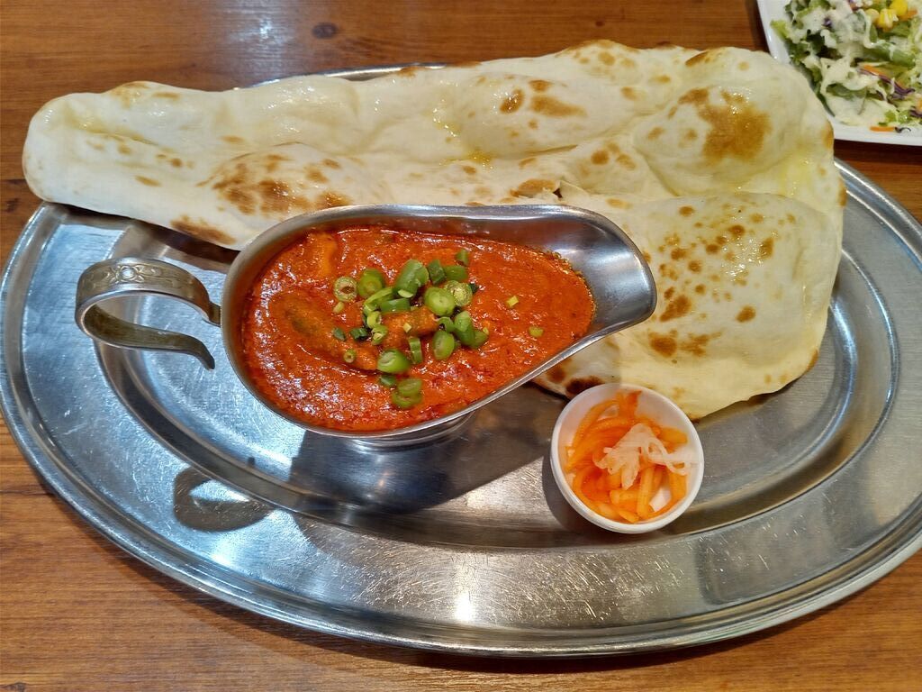 久しぶりに伺うことができました!13時過ぎに伺ったにもかかわらずお客さんが次から次へと。さすがの人気店♪この日はレディースセットで300円でナンをチーズナンに変更しました。チーズナンはとろとろもちもちで本当においしかったです!カレーはキーマとバターチキンの二種類を選択。大辛にしたら辛さがアップデートされていたのか、ひーひー言いながら食べました!チーズナンで辛さが和らいでちょうどよかったかも。値段、メニュー等が改定されており、プラス料金を支払えばナンはおかわり自由のようです!また、宴会メニューなどもありたまにインド料理で忘年会なんかも楽しそうです! (訪問:2024/12/08)