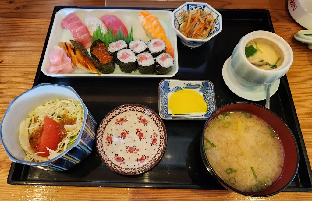 栃ナビの投稿をみて前から行きたかった居酒屋さんに初訪問です。人気ありますね。12時前には満席でした。注文はランチメニューから「にぎり寿司 1,200円」海鮮丼の方が多かったですがやっぱり、にぎりが好きです。味噌汁、お新香、小鉢、茶碗蒸し、サラダ、ドリンクまで付いてコスパの良いランチでした。 (訪問:2026/03/21)