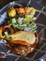 | 益子の茶屋の人気メニューをラインナップ。オムライス、ガパオライス、ハンバーグ、鶏肉黒酢あんかけランチなど。ソーシャルディスタンスでの営業です。お席のご予約お電話にて0285729210 | ふわとろオムライスに柔らか自家製煮込みハンバーグのコンボ。新メニュー始まりました! |