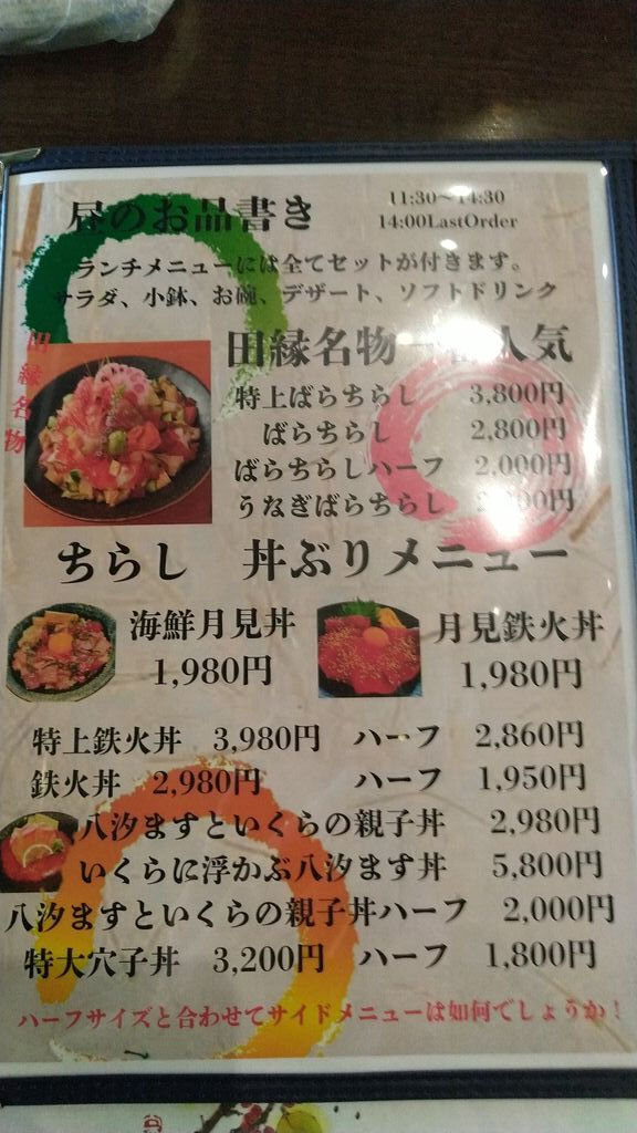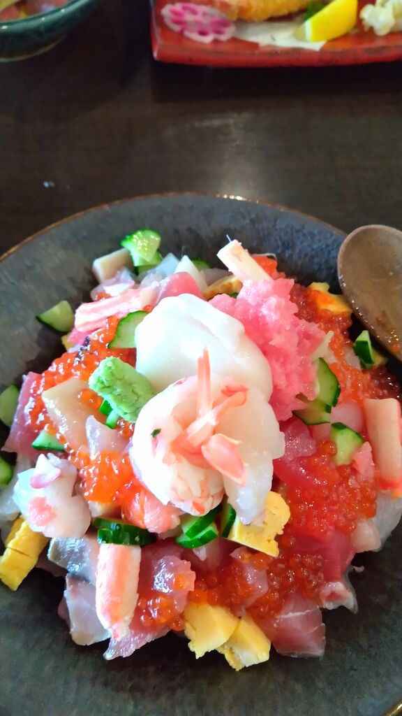 夢をひとつ叶えてきました(=´▽`=)一目見たその時から食べてみたかった【すしの田丸家田縁】のばらちらしランチ。栃ナビさんの口コミで、しっかり予習をしていたものの欲張って通常のばらちらしをオーダー。提供されてびっくり。ハーフサイズで十分だったかも...。ボリュームが凄いんです。ばらちらしは¥2800で、茶碗蒸し・サラダ・ドリンク・デザートも付いていて豪華♡しかも平日は曜日によりサービスがあり火曜日はうどんか蕎麦が付いてきます。私は蕎麦にしました。どれもこれも美味しい。めちゃくちゃ美味しい。メインのばらちらしはネタが厚みがあり新鮮で飛び上がる程美味しかったなぁ〜。海無し県の栃木県でこんなに美味しい海鮮がいただけるとは夢みたい。入り口では金魚が出迎えてくれますよ。 (訪問:2025/11/11)