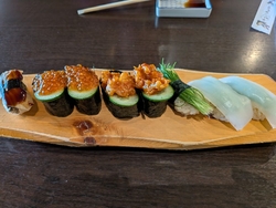 2回目の来店です。前回は息子と、今回は大食いの旦那様と一緒に、前回同様一人あたり4500円のランチ寿司の食べ放題に挑戦です。前回の反省点?を抑えつつ、注文する順番や食べる順番を考える作戦を練る私です。手巻きはかなりジャンボでハードなので今回はパスして握りと軍艦巻きをたくさんオーダー。途中にサラダも食べつつ、慌てずにいろんな種類を食べていくようにしました。昨年末とは注文個数やフセンに書くオーダーシステムが多少変わったので、スタッフの説明に耳を傾ける事をオススメします。今回もたくさんの寿司や料理を美味しくいただきました。ごちそうさまでした。また挑戦します(笑) (訪問:2026/01/24)
