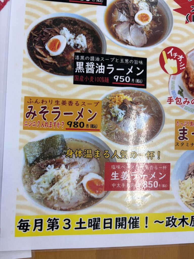 | 黒醤油ラーメン みそラーメン 生姜ラーメン |
