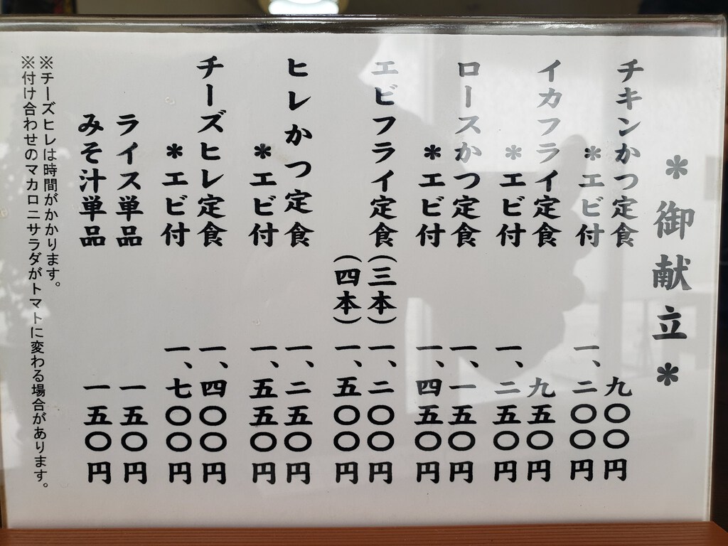| ロースかつ定食/エビフライ付 | 1,000円/1,250円 |