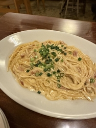 久々にディナーを食べに行きました!運良く1番乗りでエビフライ、カニクリームコロッケ、田舎風ピザ、柚子胡椒の和風カルボナーラ(大盛り)を注文。熱々トロトロのクリーミーなクリームコロッケ、プリプリのエビフライと食べ応えがあり美味しかったです。家では上手に作れないカルボナーラも濃厚で美味しかったです!田舎風ピザは生地がモチモチで真ん中に卵が入っていました!ピザなのにサラダのようで美味しかったです!味のテイストも違かったので色んな味を楽しめました!そして提供も早かったので1時間以内で食事を終えることができました。ご馳走様でした♪ (訪問:2026/01/25)