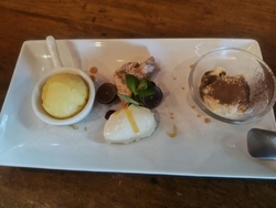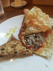 初めての訪問は平日の開店少し前に到着、駐車場に3番目でした。事前にレビュー見ていた通りサラダバーは二皿までオッケーで実はこの二皿で山盛りにしている訳ではないがお腹一杯になりかけます。メインはボスカイオーラ(キノコ風)のカルツォーネピザ、写真を見た時にこのピザだけビザらしくない写真でしたがさほど気にせず頼んだら、来てビックリ、肥満体のナンのオバケかと……切り込み入れた写真のように中味は椎茸、舞茸が予想以上に一杯。かなりボリュームはあります。あと、ナイフとフォークを駆使しながら食べるのでピザを食べた感覚とはやや異なりますがキノコ好き、健康志向強い方には最高の逸品です。追加料金440円発生しますが本日のドルチェ4種盛りも注文、この手は別物ですがお腹パンパンになりました。初めてなので、店員の方に質問もしましたが皆さん、丁寧に答えてくれました。機会あればまた、行きたいと思います。 (訪問:2025/10/17)