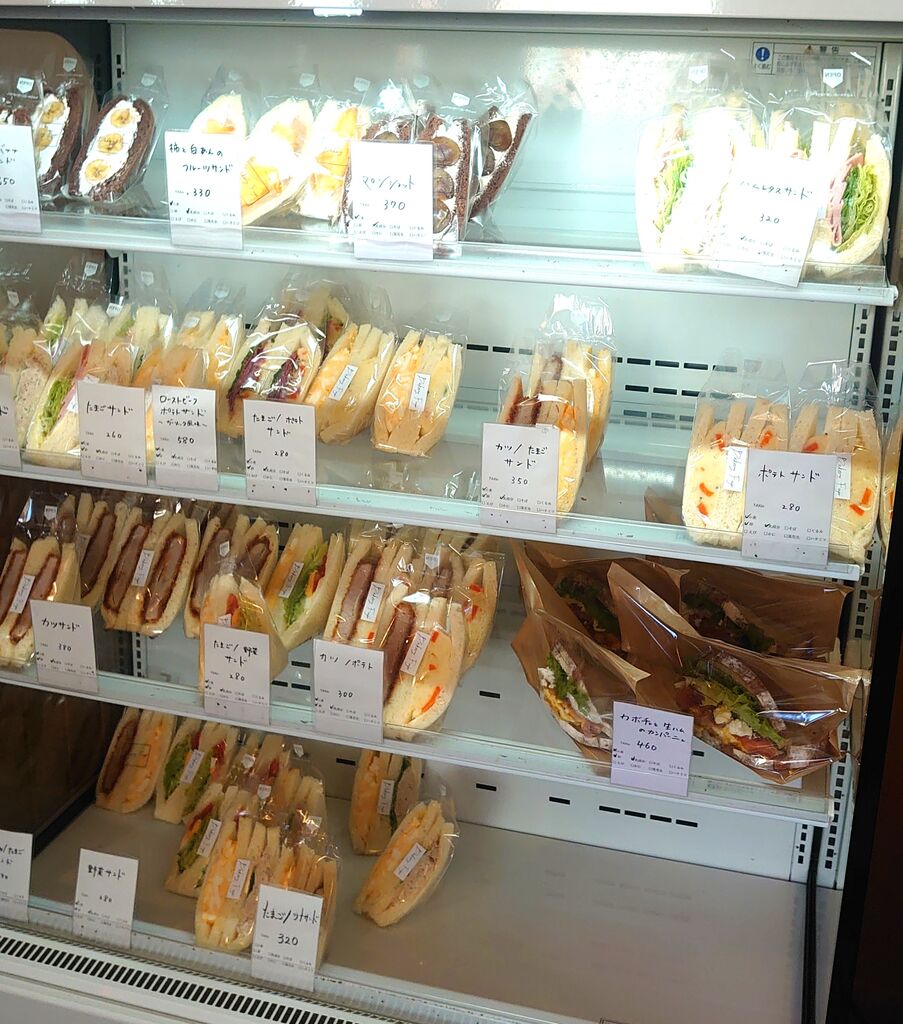 この日13:30の時点で大好きなミルクフランスは、既に完売( ꇐ₃ꇐ )それに似た新発売のごまミルクフランスを先ずトレイに(^^)それからツナとたまごのサンド・よだれ鷄のサンド・柿と白餡&ホイップのサンドをスタンプカードがいっぱいになったので500円引きで有り難く購入しました(o˘◡︎˘o)♪︎よだれ鷄は、結構スパイシーです^_^ (訪問:2025/11/14)