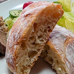 近くまで来たので伺いました♪。。。今日は【ペッパーボンレスハムとカマンベールクロワッサン¥380】【国産小麦のリュステルック¥120】にド定番の【たまごサンド¥260】を購入(^o^)/。。。「ペッパーボンレスハムとカマンベールクロワッサン」は、サクッサクのクロワッサンにペッパーの利いたハム、カマンベールが挟まれてチーズが味わいとペッパーを存分に加えてる「国産小麦のリュステルック」は、吸水多めでモチモチの生地は風味が強く、外はパリッと!内側はしっとりとした食感です。素朴な形が懐かしさを感じる旨々のパンです(*´ω`*)。。。新しい(新作)出合いが楽しめる『ベーカリーFuji』さん!お勧めのベーカリーです( ^-^)ノ∠※。.:*:・'°☆ (訪問:2024/12/04)