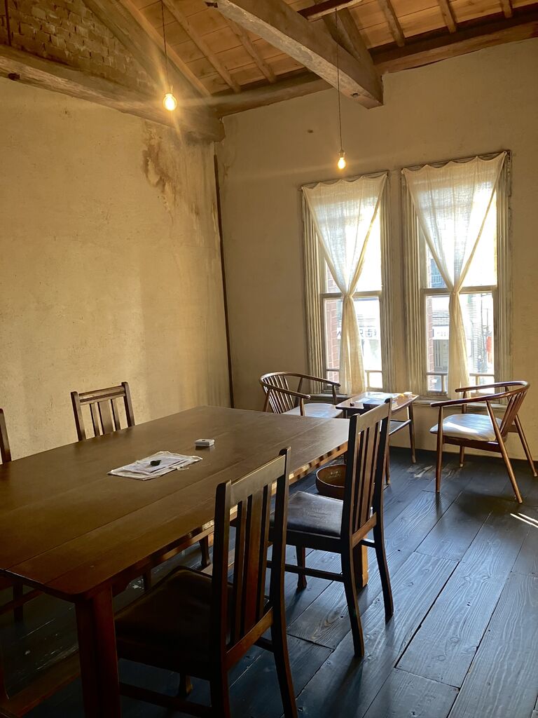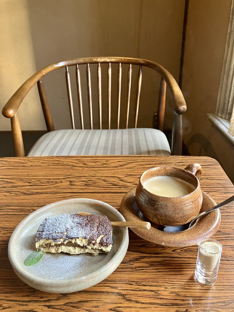 初訪問です❣️最近は、食欲の秋で底なしの胃袋になっており、最初は【自家製ブルーベリーソーダ・りんごのケーキ】を!追加で【ホットのほうじ茶ミルク・ティラミス】をいただきました♪ほうじ茶ミルクは、甘さが無いのでお好みできび砂糖かな?入れていただきます。ティラミスってお店により違いがありますがコチラのティラミスは、とろける滑らかクリームと底の方は、じゅわ〜っとした感覚でまさに好み(o˘◡︎˘o)♪︎2階の窓際に座れてラッキーでした(^^)天井を見ると4代目・・・と柱に書いてある!調べてみたら大正時代に建てられたモダン建築!元々は、江戸時代後期から煙草の卸売商をしていた関根家の建物だと云うことを知り写真の意味が分かり納得(^^) (訪問:2025/11/21)