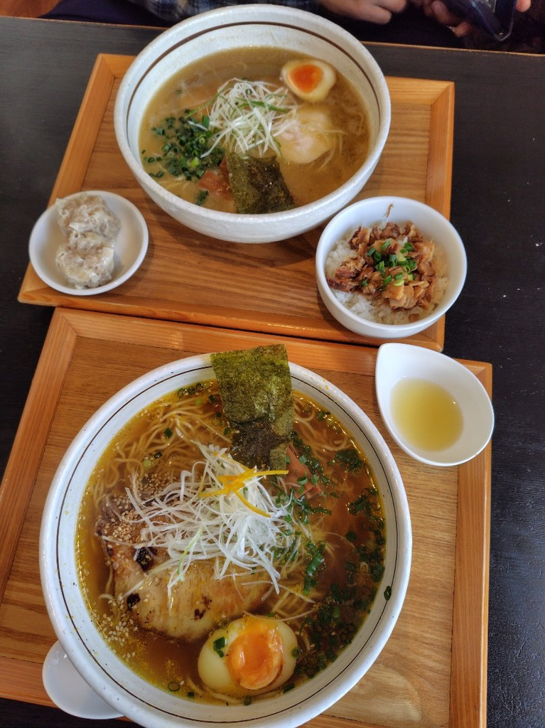 タムラ食堂さんでランチです。私は鶏そばにタムタムセット、妻はゆず塩の魚介をいただきました。ゆず塩は、そのままでも柚子が香って美味しいのですが、柚子のソースを足すとさらに美味しくなります。鶏そばも安定の美味しさでした。 (訪問:2025/12/13)