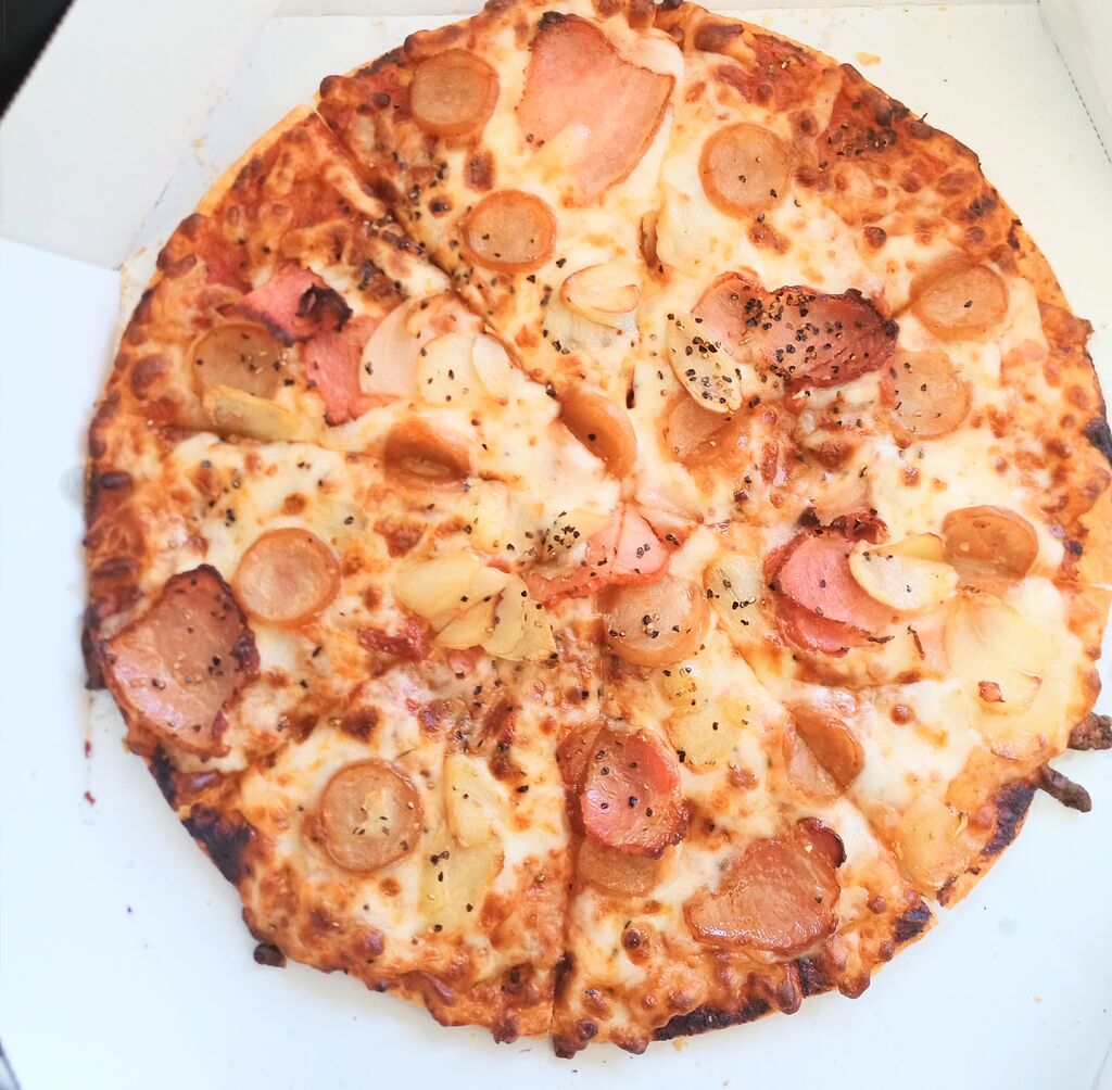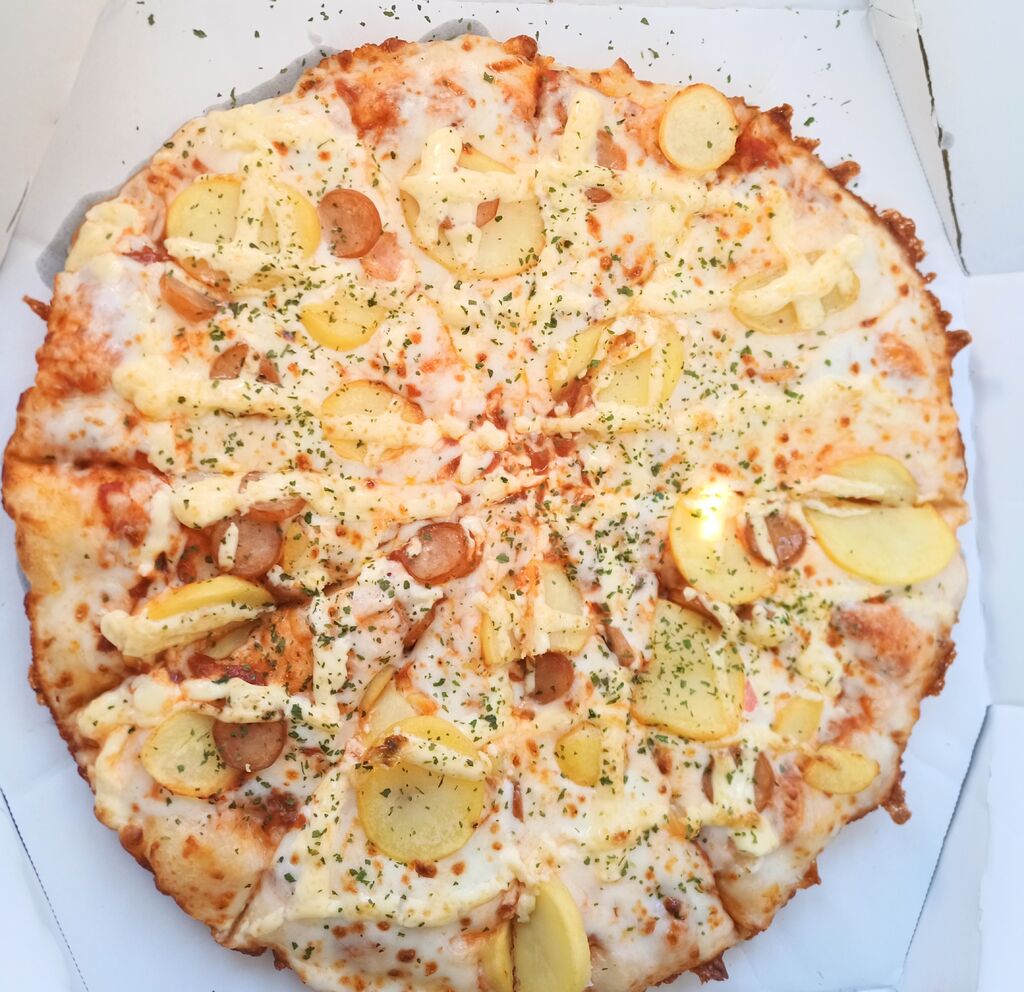 Lサイズのピザとポテトをテイクアウトしました。Lサイズは3〜4人前で12カットになっています。生地はパンピザという、厚みがあってピザのミミがない生地をチョイスしました。ほどよい厚みでボリューム感があり、トッピングとのバランスがよかったです。注文から受け取りまでの時間は30分程度でした。 (訪問:2026/02/15)