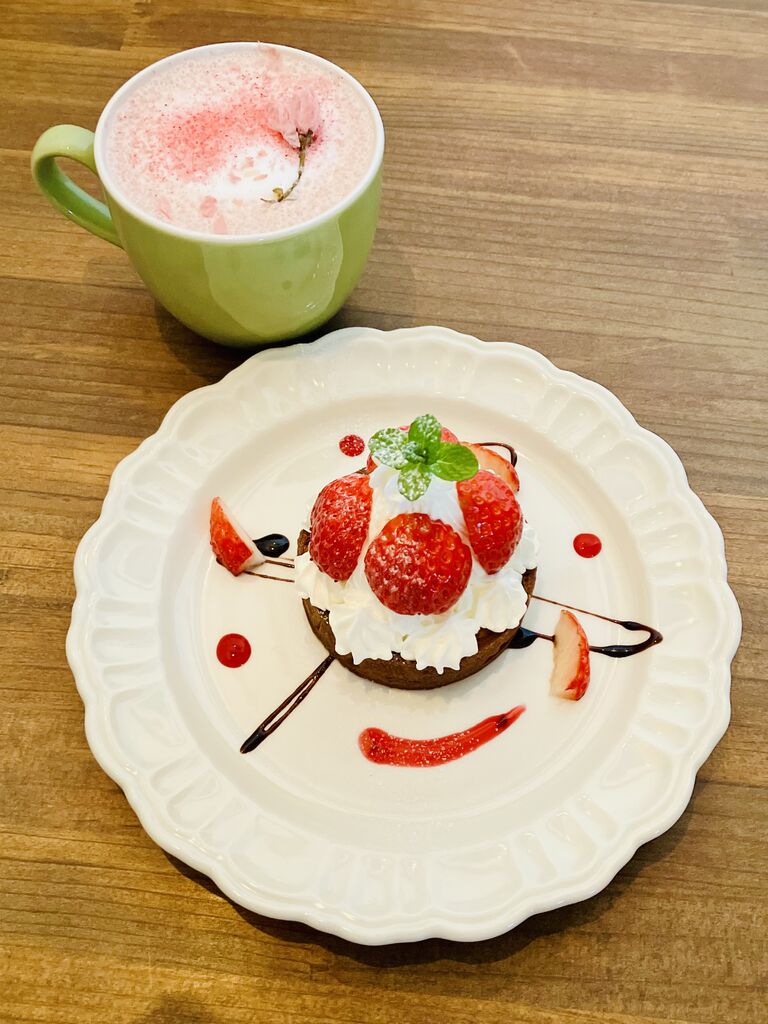 桜の時期にはまだ早いのですが、本日のドリンクに【桜のラテ】が仲間入りされていたのでフライングでいただいちゃいました❣️そして【苺のタルト】もチョイス‼︎ラテは、桜の軽い塩漬けと共に桜餅を食べている時のような自然の桜が香る優しいラテ(ღˇ◡︎ˇღ)生クリームのお山に苺が可愛らしく並んで目にも愉しく美味しいケーキをお供に暫し読書して来ました♪スタンプカードがいっぱいになったので今日は、デザート&ドリンク無料です!有り難いです♪︎ヽ(喜・▽︎・*)乂(*・▽︎・嬉)ノ♪︎感謝❣️ (訪問:2026/03/01)
