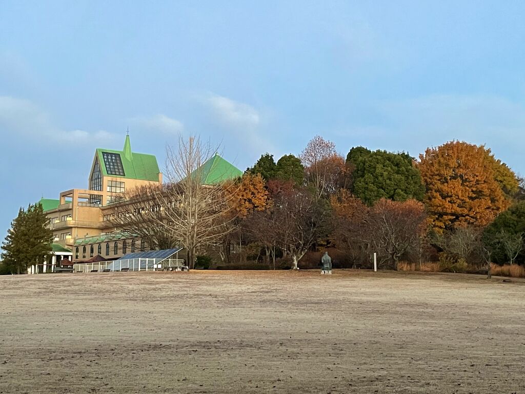 ふれあいの丘までサイクリングしてきました。広い敷地にトンガリ屋根の特徴的な建物、たくさんの面白いモニュメントがあって、歩くのが楽しいです。光の当たったステンドグラスもとっても美しかったです(*^^*)♪ (訪問:2024/12/07)