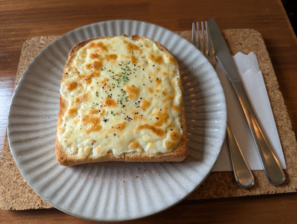 皆さんのクチコミが気になって行ってみたいと思っていたお店です。【チーズトースト】と【アイスコーヒー】、【かぼちゃのプリン】をいただきました。たっぷりのチーズと焦げ目が香ばしくとても美味しいチーズトーストでした。かぼちゃのプリンは濃厚でたっぷりのクリームも嬉しかったです。ライトですっきり感があり飲みやすいアイスコーヒーがプリンによく合いました。ついつい長居をしてしまうお店でした。ごちそうさまでした。 (訪問:2025/06/08)