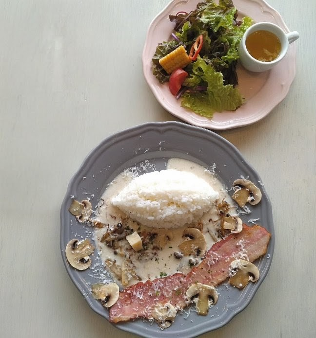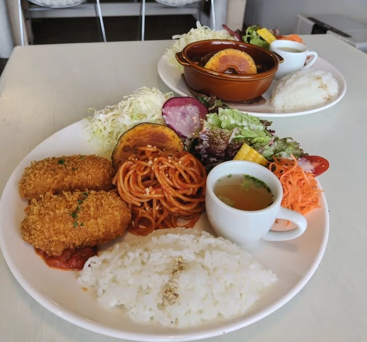ランチタイム訪問、3度目のカフェさん。すっかりお気に入りになってしまいました。きのこたっぷりのおしゃれなクリームライスとサラダとスープのセットをいただきました。数種の食感豊かなきのこと炙りベーコンと削ったチーズ、美味しくてあっという間に完食しました。たっぷりのサラダの量もありがたいです。お腹に余裕があったので苺のスフレパンケーキとくまちゃんのコーヒー氷がのったアイスラテを。苺たっぷりのふわふわパンケーキ美味しかったです!アイスラテもくまちゃん氷の飾りが沈んでいくのを見ながらほっこり過ごしました。くま氷はあくまでも飾りで溶けにくくなっているので、ゆっくり溶けるのを待ちながらカフェタイムを満喫してほしいな…とスタッフさんがおっしゃってました。おそらくですがかじったり、口にほおばって食べようとする方がいるのでは?(笑)今回も楽しい美味しいカフェタイムでした。お一人様でも過ごしやすいお店ですが、次は友達誘って伺いますね。 (訪問:2026/01/17)