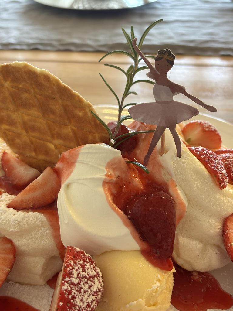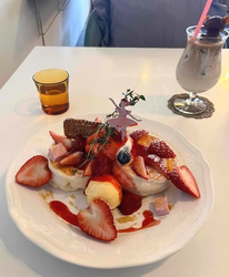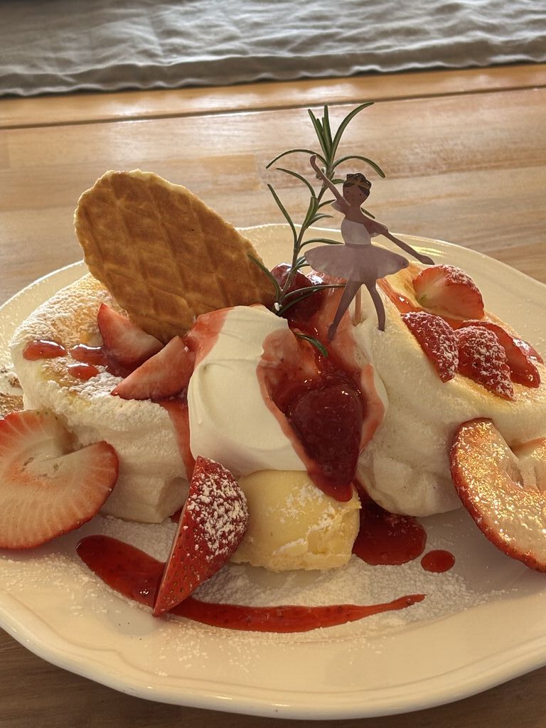 あさイチでパンケーキを食べに行きました。ランチも食べたかったけど今日はパンケーキとトーストを選びました。パンケーキは苺のスフレパンケーキや塩キャラメルパンケーキ、お食事系のパンケーキなどありましたが、求肥がのった大福風の雪見苺パンケーキにしました。プルンプルンしながら運ばれてきたかわい過ぎるパンケーキ。削りホワイトチョコがかかっていて名前の通り「雪見」でした!苺のトーストはスタッフさんいわく「そんなに厚くなくうすめかな〜」との事でしたがしっかり厚みありまっせ(笑)ランチもスイーツもボリュームあって嬉しいです。寒い日でしたのでドリンクはジャスミンティー、ほっこり可愛いしたっぷり飲める。これまた嬉しい。お食事系のミールパンケーキもサラダもりもりでポテトとベーコンがどーんとのっているのでオススメのメニューですよ。 (訪問:2026/01/14)