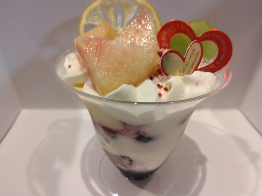 誕生日のケーキを予約に行きました。が、ショーケースのケーキが私を呼んでいる…。ついつい予定外に買ってしまいました。日替わりパフェ(460円)、アサイーボール(560円)。日替わりパフェはブルーベリーと桃。アサイーボールは実はお初。1度食べてみたかったのです。フルーツもたくさんのっているし、それでこの値段はどちらもお得だなぁと。パフェは子供が、アサイーは私がペロリといただいちゃいました。誕生日のケーキも楽しみです。 (訪問:2025/09/04)