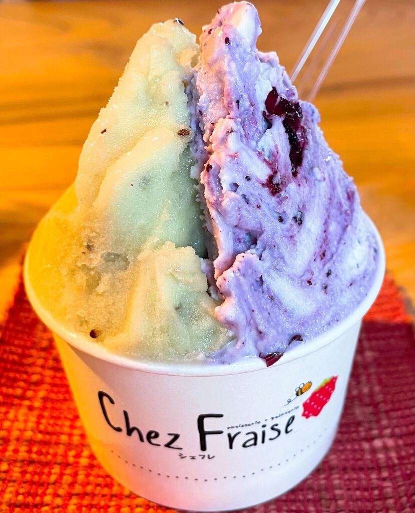 “シェフレ”はいちご農家の意。いちご農家が作るスイーツ…朝摘みいちごのショートケーキをはじめ季節のフルーツを使ったケーキ、焼き菓子、ジェラート、フルーツ100%のフローズンドリンクもございます!イートイン、テイクアウトもぜひご利用ください♪