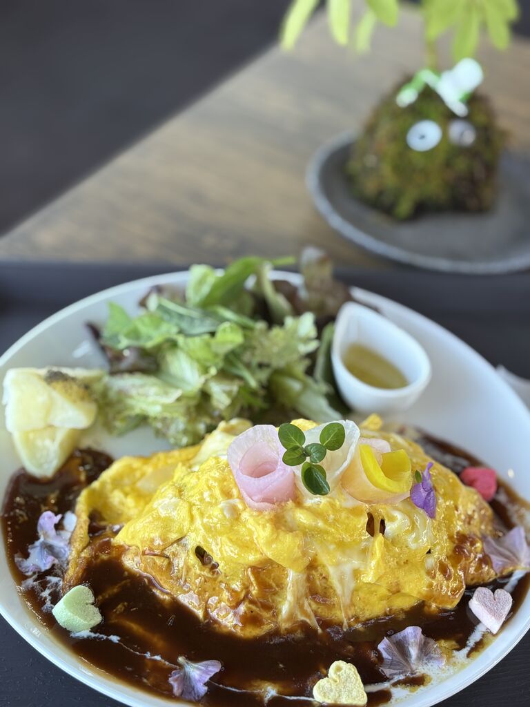 苔玉スィーツが目的で来店しましたがお花畑オムライスに魅せられふたつをオーダー フワフワのオムライスにデミグラスソースは当然の美味しさでした 苔玉スィーツも本物の苔玉を思わせるようです 中はバニラアイスとラズベリージャムが入っており 寒い日でしたが美味しく頂きましたご馳走様でした (訪問:2026/01/24)
