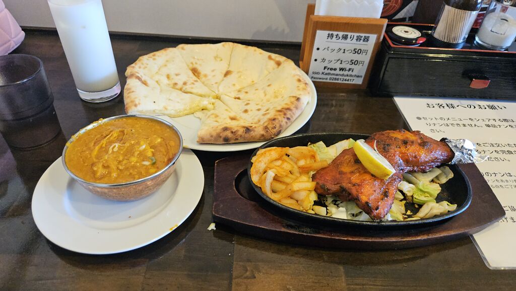 今年初のカトマンズキッチンでタンドリ-ランチ注文。ラッシーとチーズナンでダールキーマカレーのホットにしました。チーズナンの一口目がたっぷりのトロトロで幸せです。カレーもホットにしたので辛かったけどチーズナンと一緒に美味しかった、疲れたのでタンドリーチキンも食べたくて久しぶりにお腹いっぱいの完食です( *´艸`) (訪問:2026/03/08)