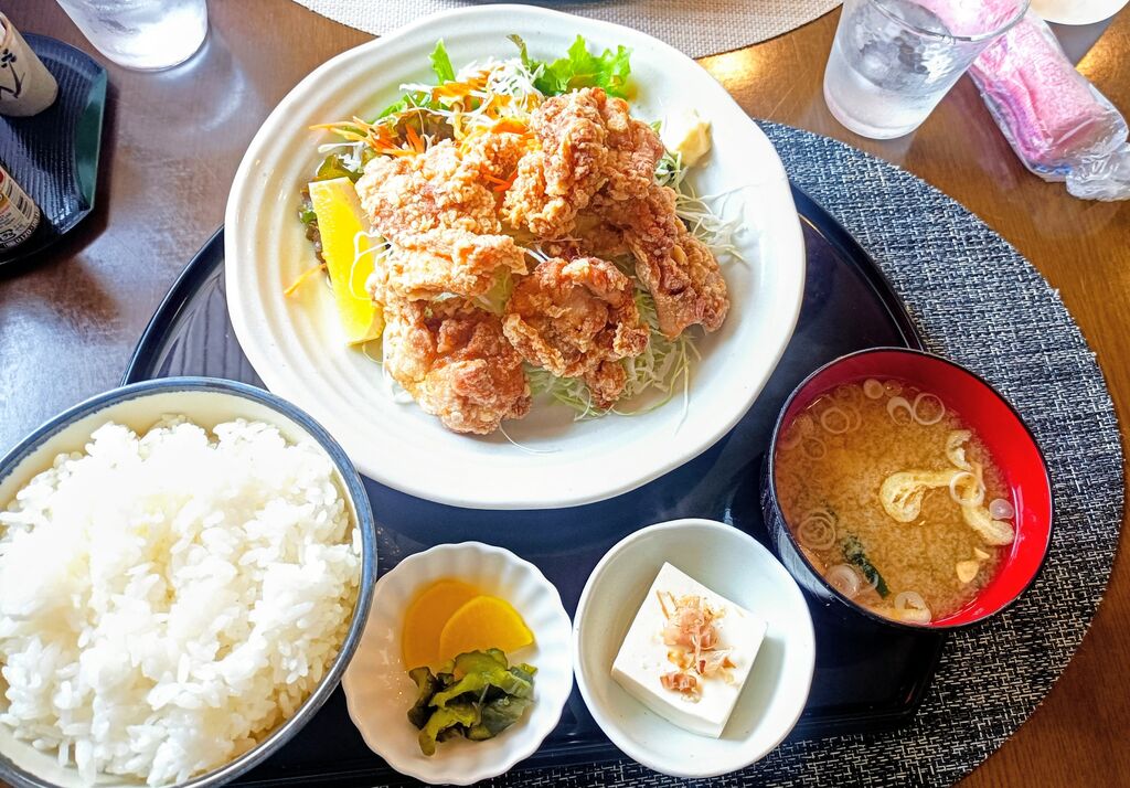 鬼怒川付近で定食屋と調べたらたくさん出てきて、私の好きな生姜焼きがあったので初訪問しました!外観は定食屋さん的な感じでしたが、中に入るとカフェみたいな感じでした!注文したのは目的の生姜焼き定食、お友達は唐揚げ定食。千切りキャベツの上に生姜焼きがドーン!私にはとてもとても量が多すぎるくらいでした!男の人には満足する量だと思います!タレもたっぷりかけられていて、とても美味しかったです☆唐揚げのお肉も柔らかくて美味しかったです! (訪問:2025/09/24)