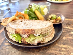 パン屋『一本杉農園』さんに併設されているカフェ『蒔時』さんにランチで伺いました♪畑のサンドイッチプレートは好きな具材とパンを選ぶことが出来ます。私は、生ハムとカマンベールチーズ×カンパーニュにしました。ハード系のパンは噛むほどに味わい深く、塩気のある具材との相性が良いです!食後にシャインマスカットのショートケーキ、季節のソーダ(梅)を注文。生クリームが甘さ控えめで、マスカットの甘みが感じられてとっても美味しかったです^ ^今回は子連れで行きましたが、一本杉農園さんのパンを購入して、こちらで食べることもできました。温めていただいたり、食べやすい大きさにカットしていただいたりと、店員さんの細やかな気配りに感動しました。またぜひ伺いたいです♡ (訪問:2025/09/18)