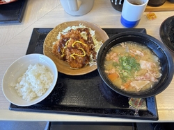 買い物帰りに久しぶりに立ち寄りました。私は期間限定の、のせカツ丼、妻は豚汁定食を注文しました♪親子丼の上にロースカツが乗っている豪華などんぶりです♪ボリューム満点でお腹いっぱいです!ヒレカツも柔らかく、豚汁も大きい器でたっぷりあり満足の定食でした。 (訪問:2026/01/18)