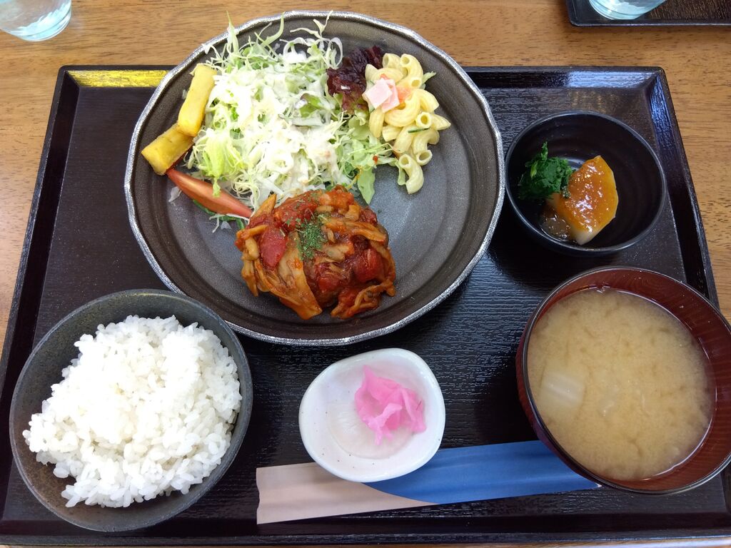 ランチタイムにおじゃましました。初来店でしたが、まずコスパの良さに驚きでしたぁ〜w(°o°)w☆☆☆メインにプラス¥380でドリンクとデザートが付けられてデザートも種類豊富♪この日の日替わり定食はトマト煮込みハンバーグ♪ハンバーグはしっかりしたボリュームで上のお野菜もうれしかったぁ〜☆やさしいお味でモリモリ完食です。付け合せの小鉢もGood〜(^^)bガトーショコラとコーヒーもいただいて大満足でした。お店の雰囲気もスタッフの方々アットホームな感じもすっごく良くてほっこりできましたぁ( ꈍᴗꈍ)♪またぜひおじゃましたいです♪ (訪問:2025/11/29)